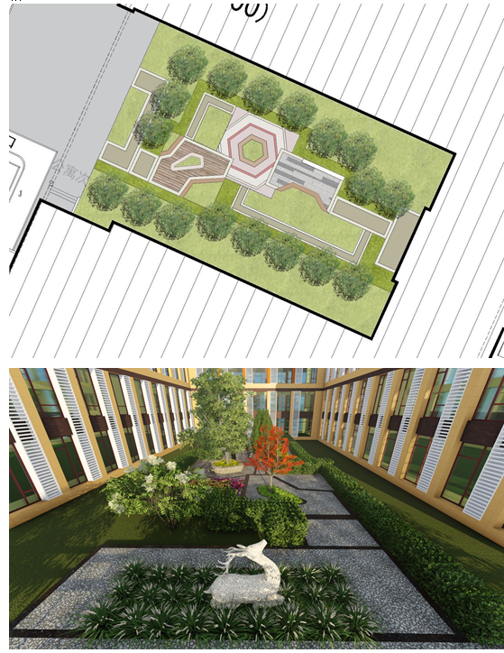 園區(qū)主要的改造區(qū)域分為兩部分,一部分是食堂公寓區(qū)域,另一部分是7300車間區(qū)域。景觀提升本著“以人為本”的原則,創(chuàng)造舒適宜人的可人環(huán)境,強調(diào)安全生產(chǎn)的重要性,同時最大限度的提高綠視率。設(shè)計結(jié)合現(xiàn)有已形成的平面布局,利用景觀元素加以串聯(lián),集中體現(xiàn)廣場景觀空間,同時融入“大醫(yī)精誠,家國天下”的企業(yè)理念。在開敞空間與私密空間之間尋找結(jié)合點,使廣場既有滿足人民較大范圍的公共開敞流動區(qū)域,又有適合人民肚子休閑停留,具有私密性的小空間,強調(diào)細(xì)部處理多樣化。整體形成開放大氣、合理高效、精致韻味景觀風(fēng)格。
